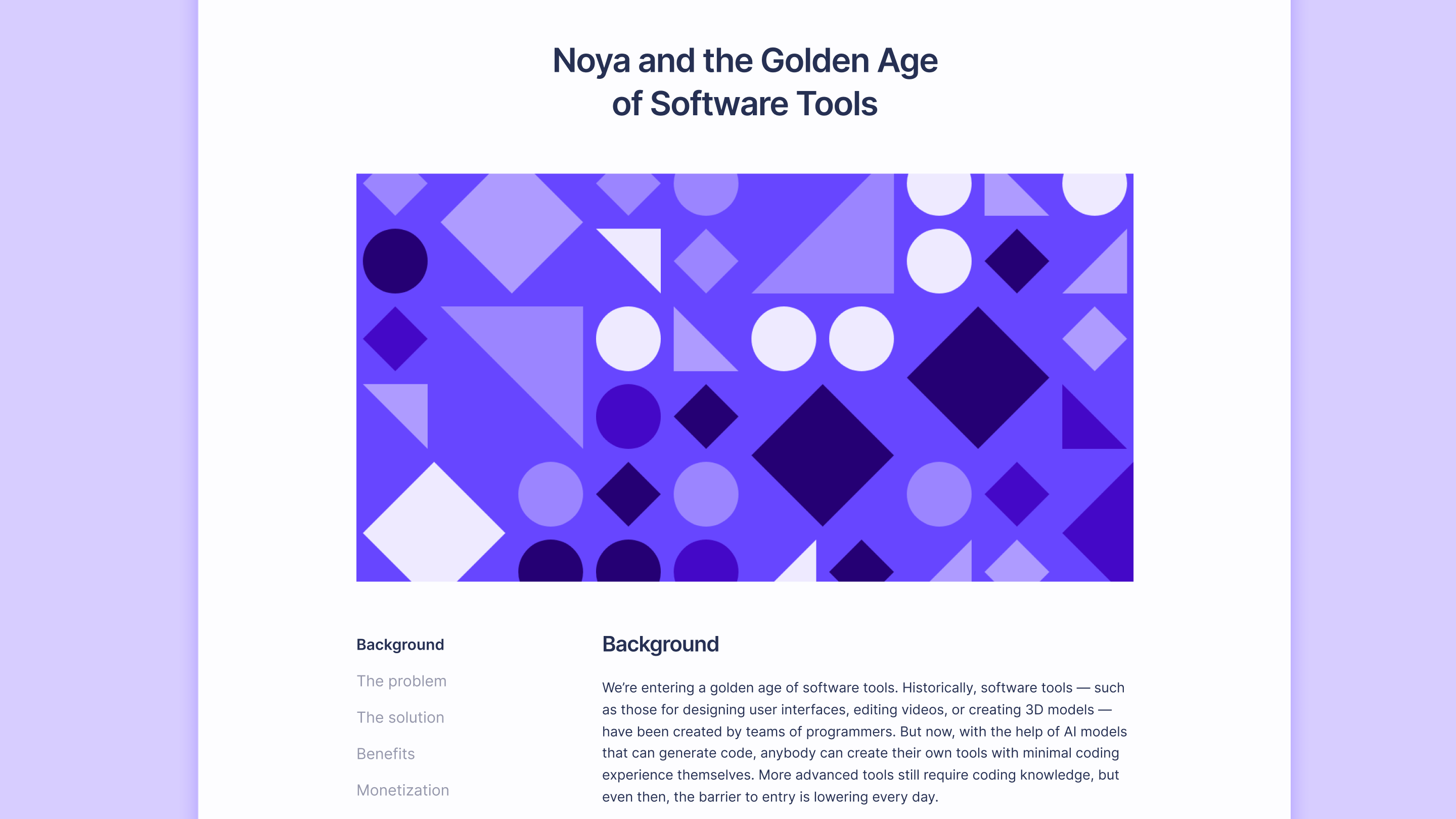 Showing how Noya’s tools connect as one system through animation, making modularity feel concrete rather than abstract.