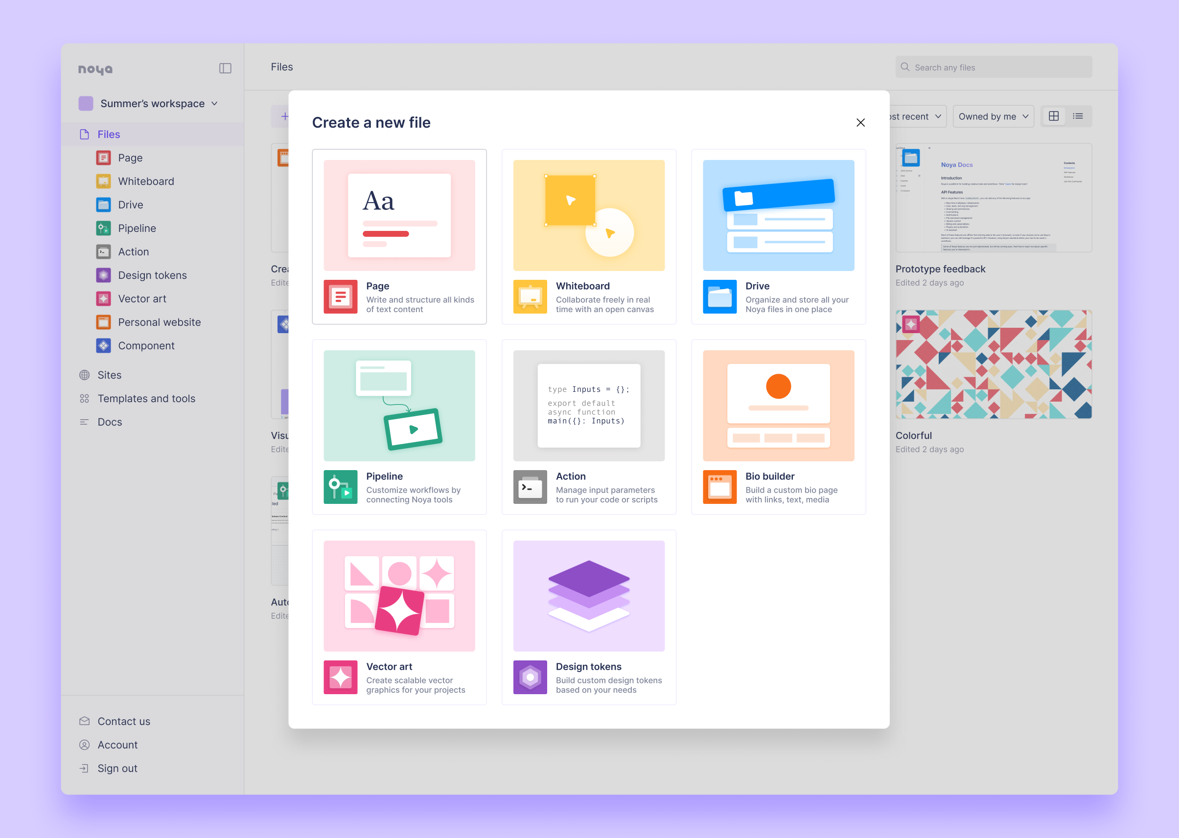 We pivoted Noya’s value proposition to be a modular AI workspace where users can build, evolve, and maintain products over time. The new design highlights Noya’s composability and connected tools.